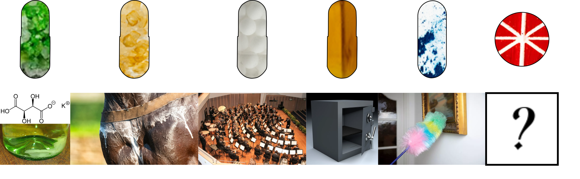 Pillen, die einem helfen, in die richtige Stimmung zu kommen, gibt es ja für vielerlei Anlässe – manche davon sicher weniger legal als die hier dargestellte Auswahl. Dafür ist die gezeigte Zusammenstellung vermutlich die seltsamste. Nicht zuletzt deshalb, weil sich für jede Pille - durchaus beabsichtigt - eine Beziehung zu einem der symbolhaft dargestellten Objekte finden lässt.